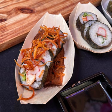 Queremos que en tu próximo festejo te ocupes solo de disfrutar. Nosotros nos encargamos del sushi: desde tablas personalizadas para compartir con amigos, hasta la opción de tener a nuestro itamae preparando las piezas en el momento. Una propuesta fresca, artesanal y 100% libre de gluten para que todos los invitados coman tranquilos.